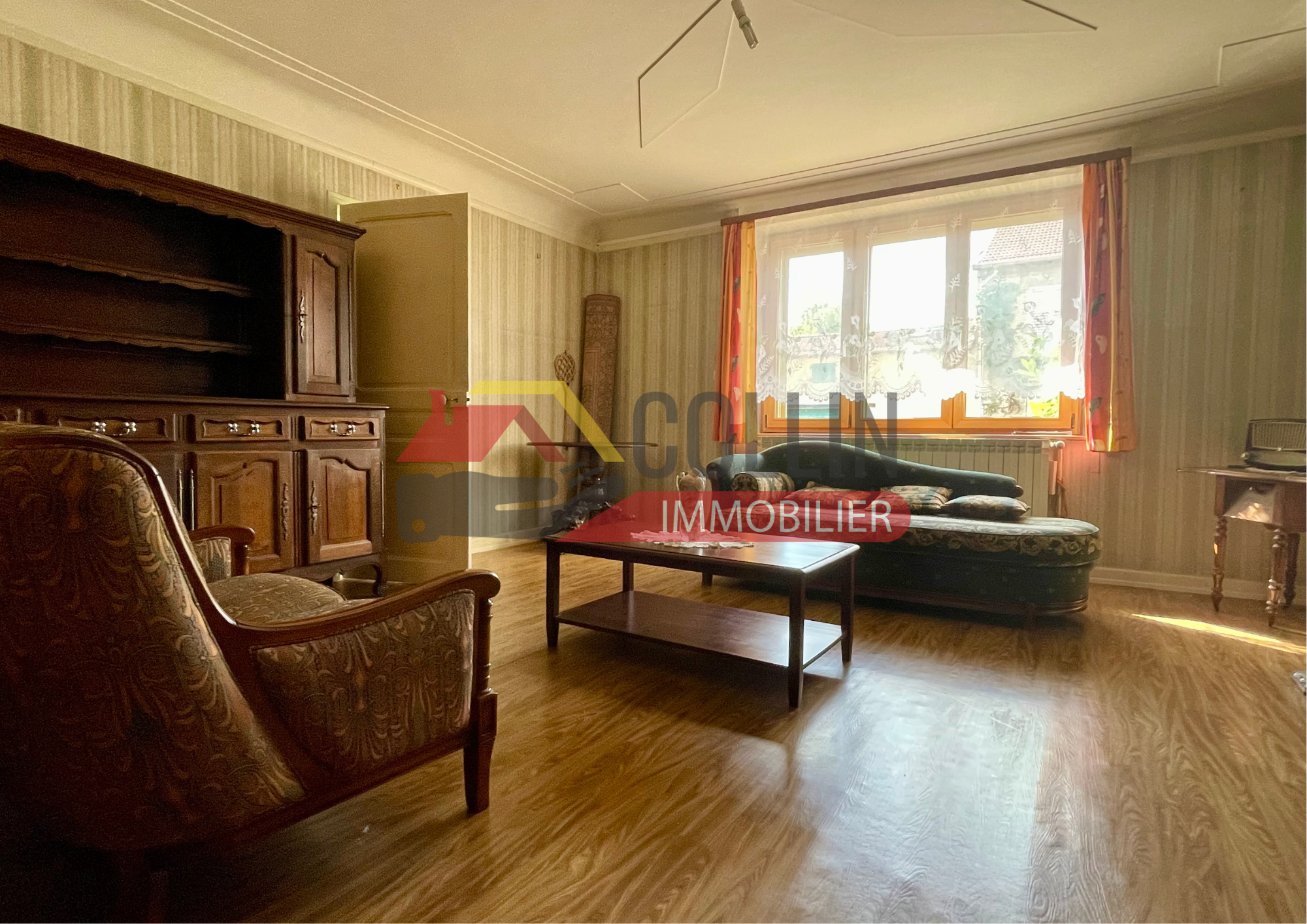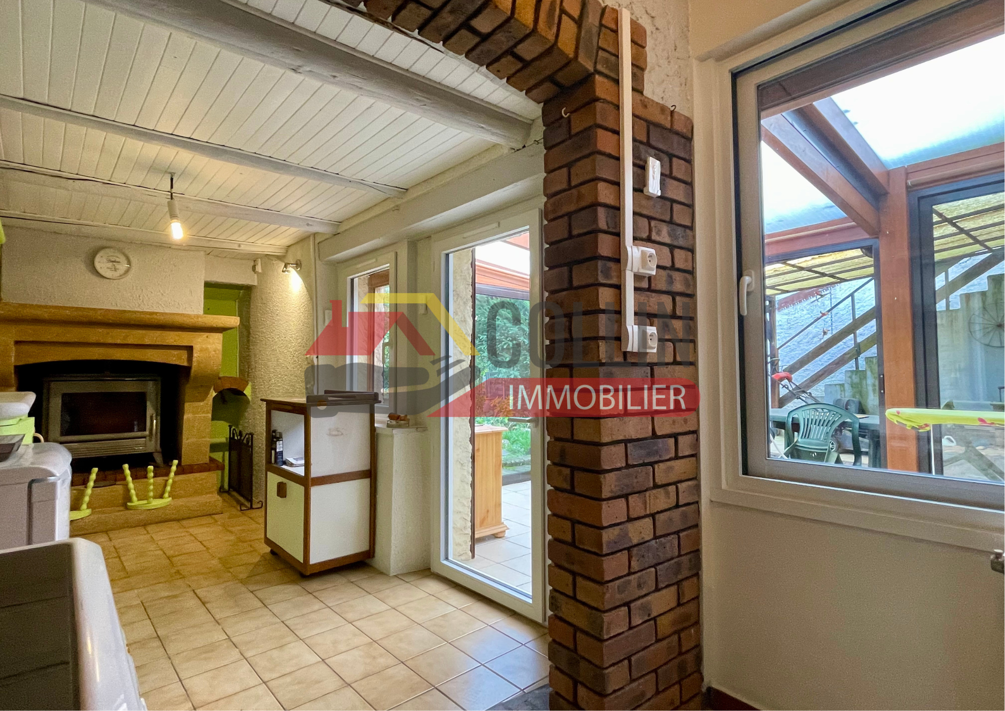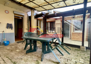 Charmante Maison de Village sur env 644 m² de terrain arboré, accès direct sur jardin, véranda et cour couverte, salon, séjour, 4 chambres, grand balcon sur cour, possibilités d'extension, garage, pompe à chaleur + poêle à bois collin immobilier Delphine COLLIN 06.72.93.47.77 REF 7297SM